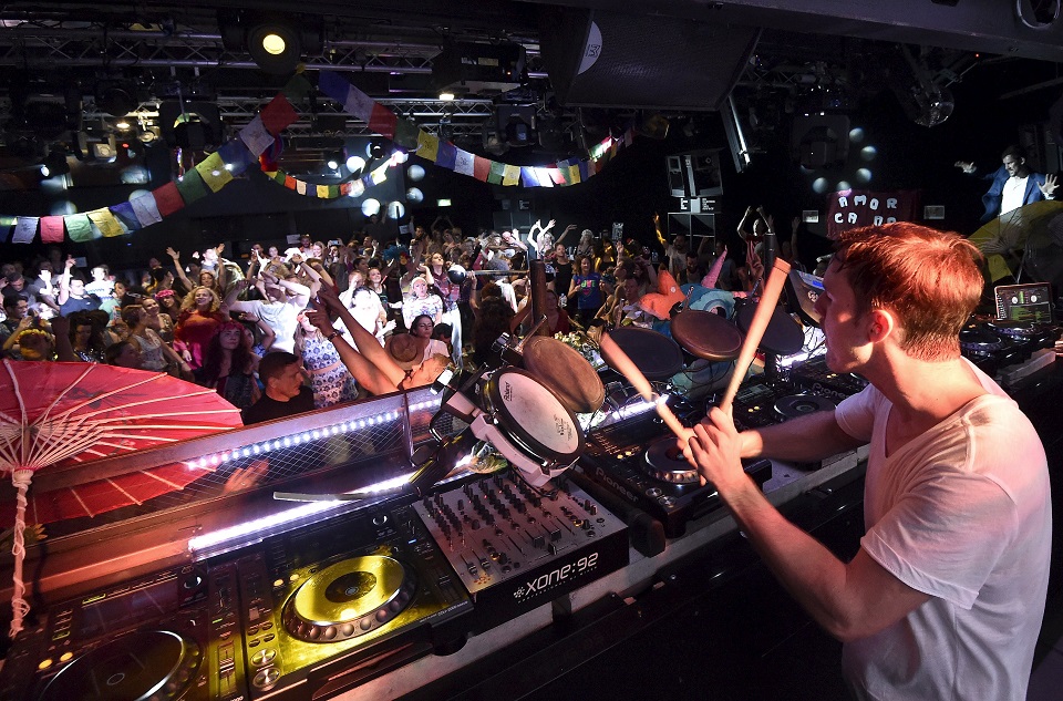 A DJ perfoms as club-goers dance at Morning Gloryville at the Ministry of Sound in south London August 11, 2015. Morning dance parties like this are gathering steam in cities across the world, giving rise to a movement known as "conscious clubbing." Its founders aim to create the energy and community of electronic dance parties with fruit smoothies and coffee instead of the drugs and alcohol more common after nightfall. Picture taken August 11, 2015. REUTERS/Toby Melville