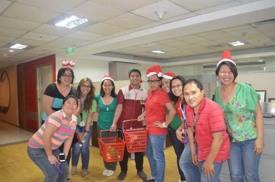 In this photo (below), we all wore reindeer or Santa hats and were hamming it up for a wacky pose. I saw that one of the news production administrators seated in one of the cubicles was also wearing a Santa hat and yelled out to her to join us in the shot.