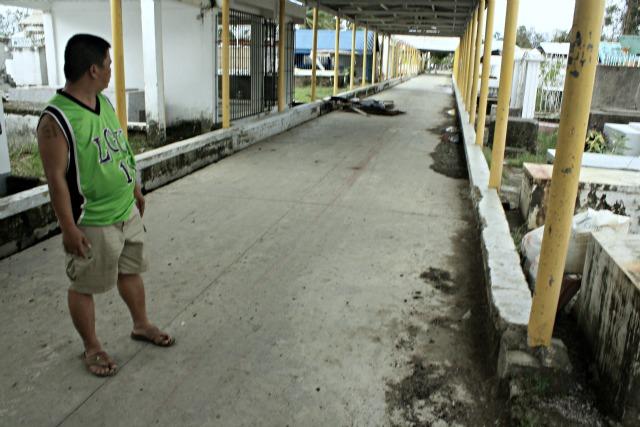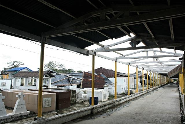 Sa tinagal-tagal ng covered walkway na ‘to sa sementeryo, ngayon lang daw tinangay ng malakas na hangin ang bubong nito. Kaya naman nagkalat ang mga yero sa sementeryo pagtapos hagupitin ng Bagyong Lando ang Infanta nito lamang Oktubre 18.