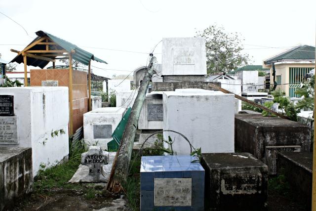 Madaling napatumba ng Bagyong Lando ang mga poste ng kuryente sa sementeryo at sa bayan. “Mukhang dalawang linggo kaming mawawalan ng kuryente,” suspetsa ni Edwin.