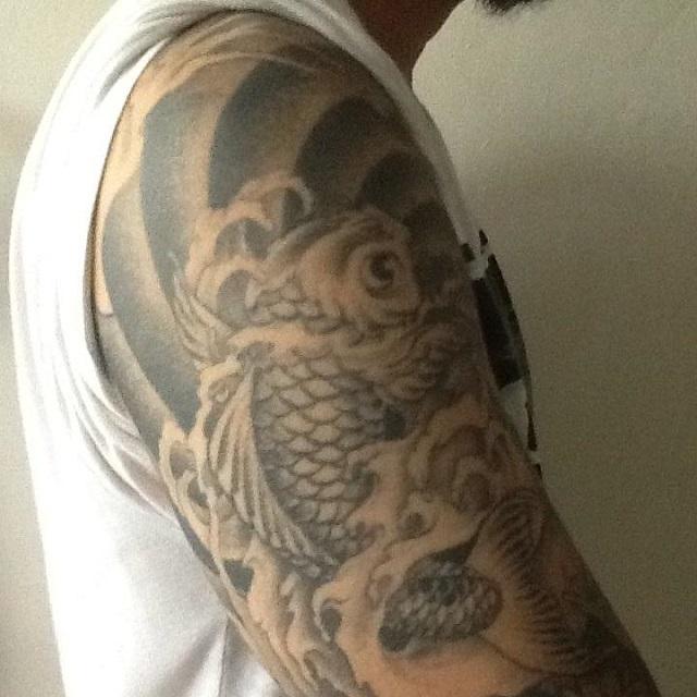 At first his parents thought they were birthmarks. But when they started to take shape like the koi fish swimming upstream on his right shoulder, why, they realized that what they thought to be birthmarks were really tattoos!