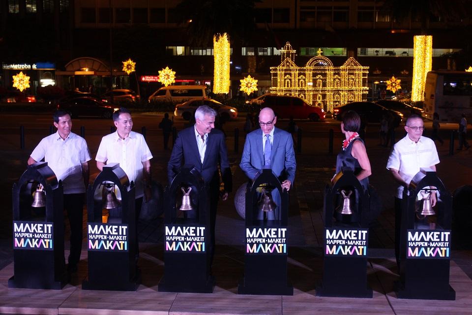 From left: Makati Commercial Estate Association president Dave Balangue, Ayala Land CEO and president Bobby Dy, Ayala Land chairman Fernando Zobel de Ayala, Ayala Corporation chairman emeritus Jaime Zobel de Ayala, honorary consul of the Philippines to Monaco Patricia Zobel de Ayala, and Ayala Land vice president Manny Blas at the ceremonial street lighting.
