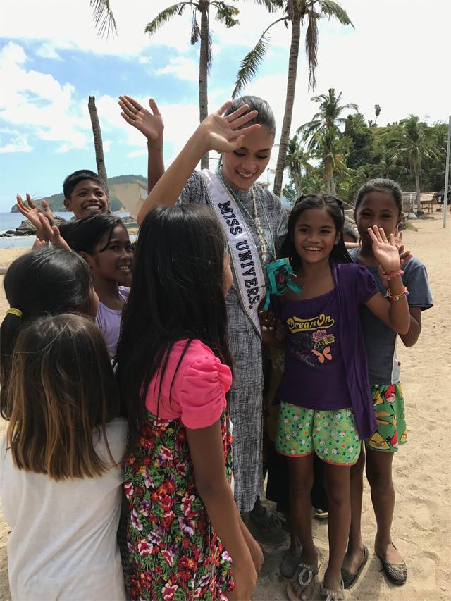 Miss Universe 2015 Pia Wurtzbach on January 21 flew to Palawan to visit Barangay Malawig in Coron. Wurtzbach also toured the town proper via a motorcade.