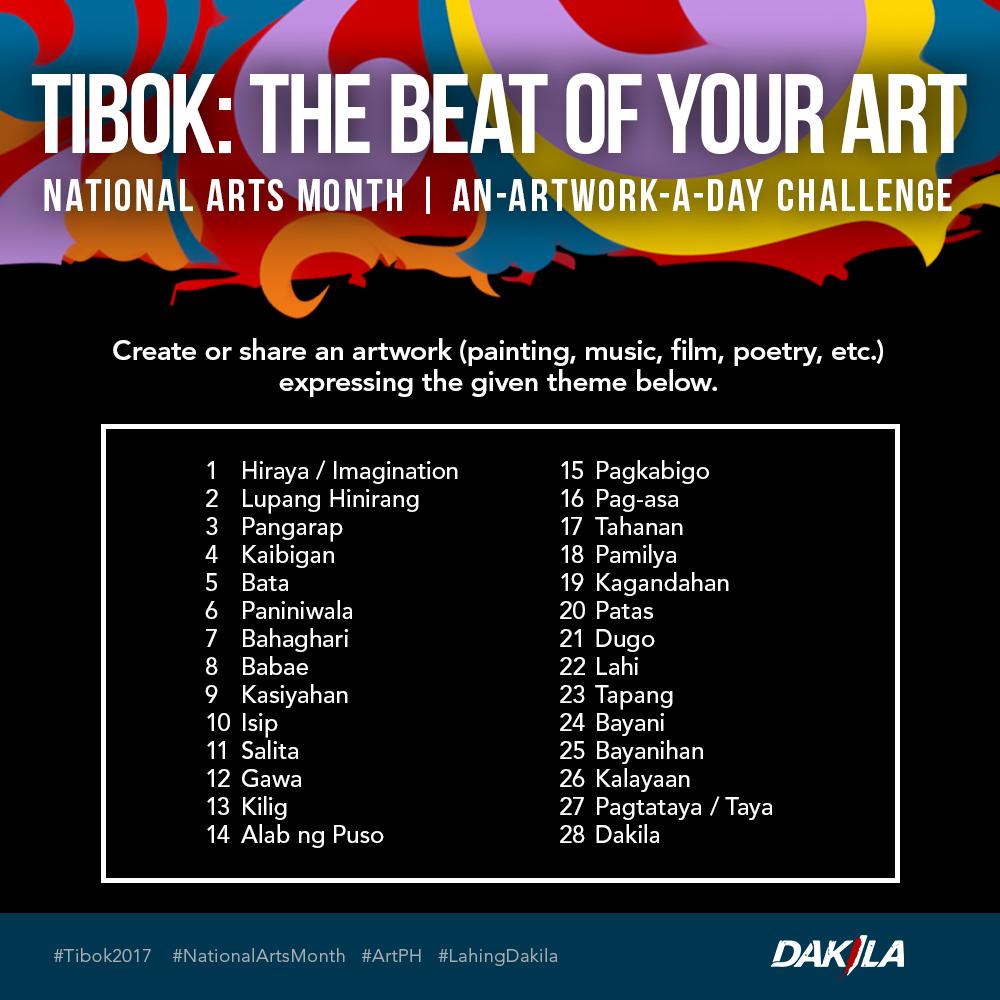 Tibok is a 28-day art challenge open to anyone. Each day has a theme and people participating simply need to use #Tibok2017 to join. Paintings, digital art, performance, calligraphy, music, poetry, and photography are all welcome in Tibok.