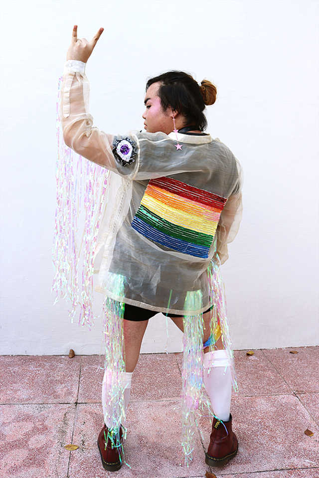 "I realized I was gender queer a few years after I came out, I thought I was just bi or within the spectrum of bi and gay. Meeting a friend in the Philippines who is also genderqueer made me realize that I identify as genderqueer also and I feel that a lot of drag queens have influenced me in that aspect, because they kind of go into genderfuck. Especially with queens such as Helvetica, Loris, Vander, a lot of other queens, they don't just rely on conventional pretty — they go monster levels.
