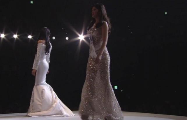 After opening the competition with a statement of a national costume and then following it up with a vibrant one-piece, Philippine bet Mariel de Leon went for a simple but elegant look for the evening gown competition.
