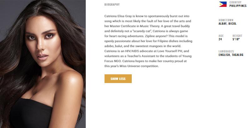 Catriona Gray's official Miss Universe contestant page is up