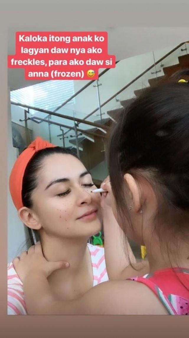 "Kaloka itong anak ko lagyan daw niya ako freckles, para ako daw si Anna (Frozen)," Marian wrote.