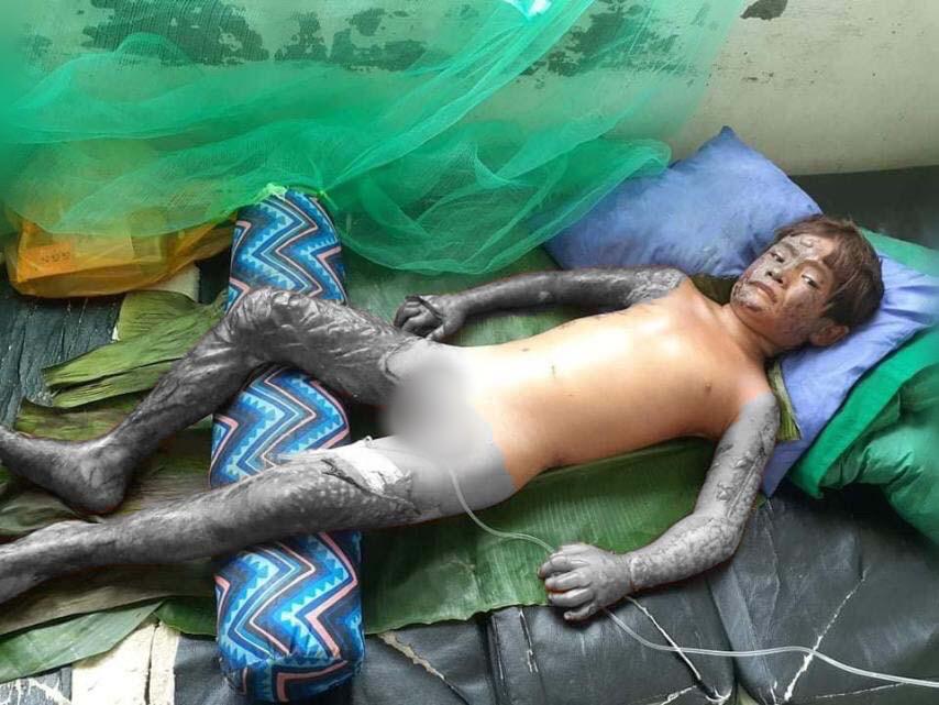 7-year-old boy who was burned in house fire uses banana leaves to ease pain