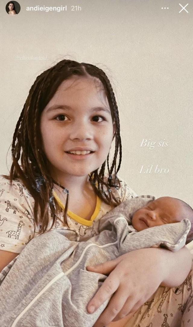 Meanwhile on her Instagram stories, Andi posted an adorable photo of her eldest daughter Ellie carrying baby Koa.