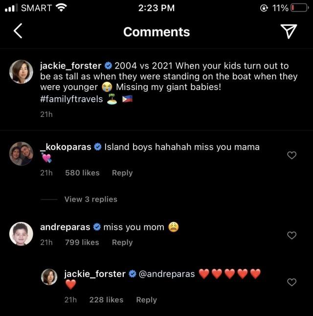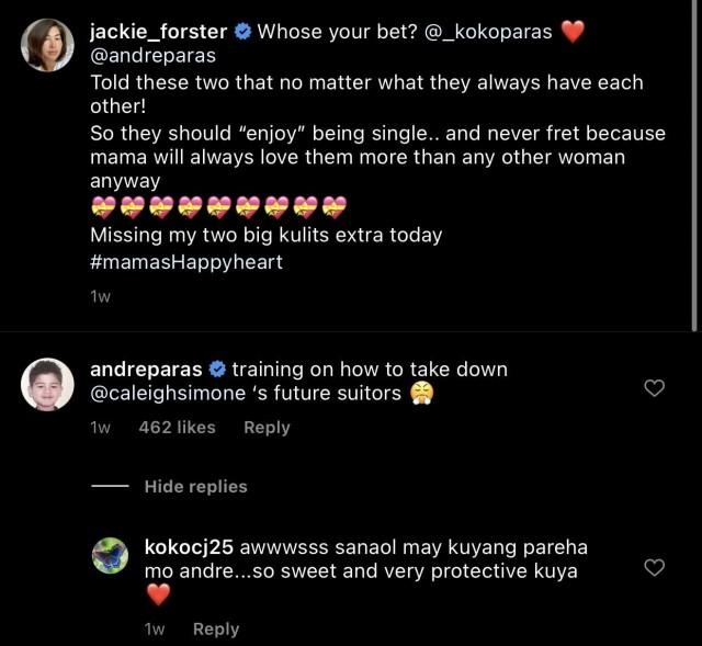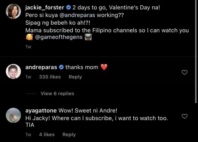A lot of netizens have been gushing over Andre Paras lately for leaving sweet comments on his mom Jackie Forster’s Instagram posts.