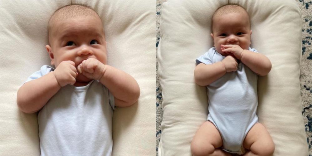 "Like smiling and giggling (especially when he sees mine or papa's face). He also found his thumb, and likes putting that in his mouth," she added. "Sometimes his whole fist too, as you can see in these pics, lol. It's been such a joy watching him grow."