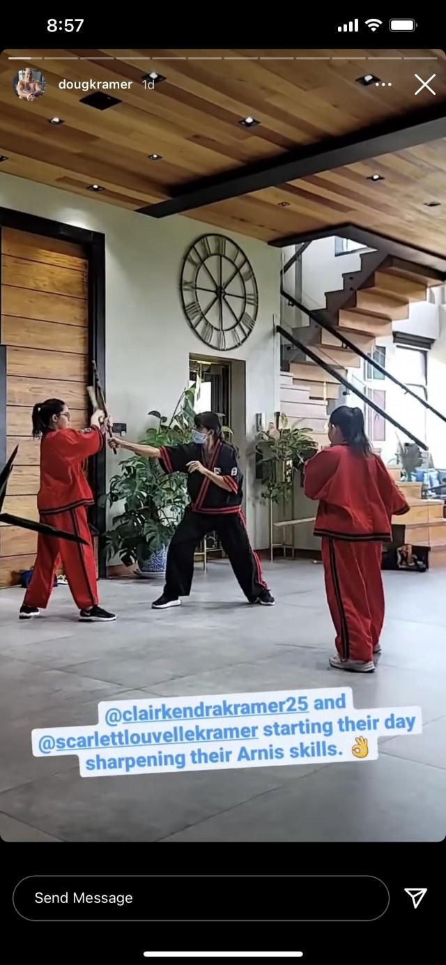 "[Kendra] and [Scarlett] starting their day sharpening their arnis skills," he said.