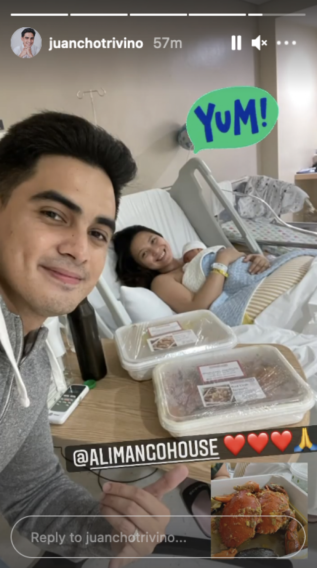 In his Instagram Stories, Juancho shared a family photo showing his wife cuddling their baby on a hospital bed.