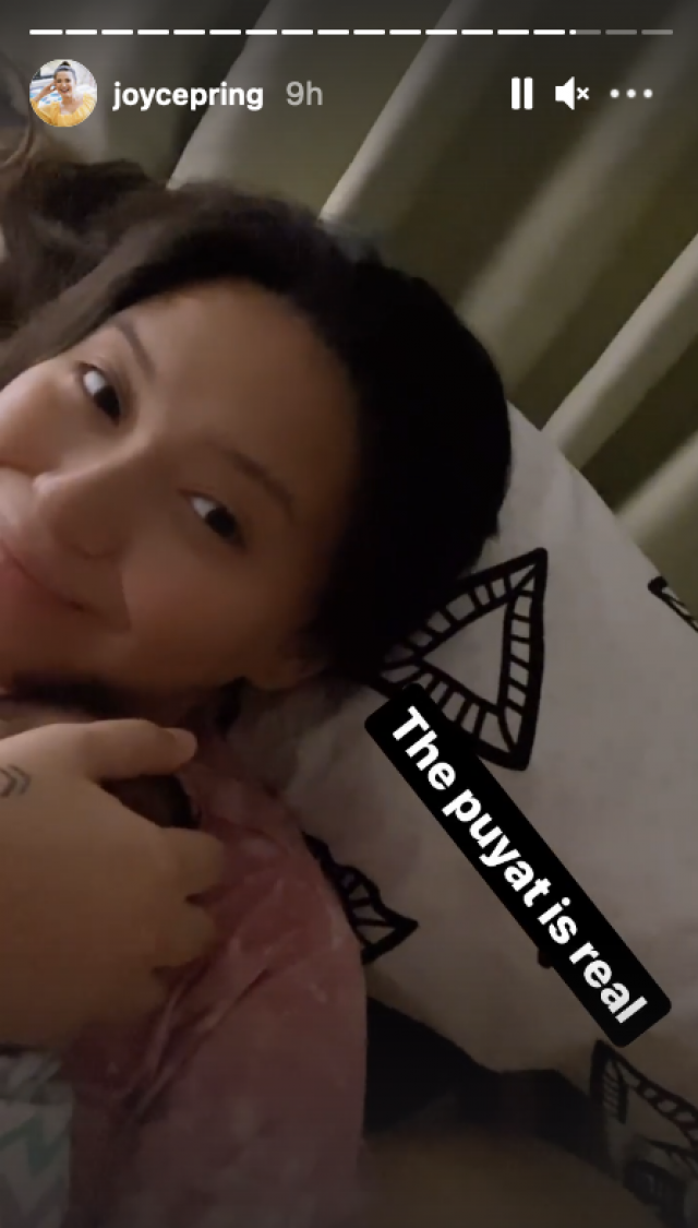 Joyce also shared a selfie of herself with her baby on her chest in her own Instagram Stories.