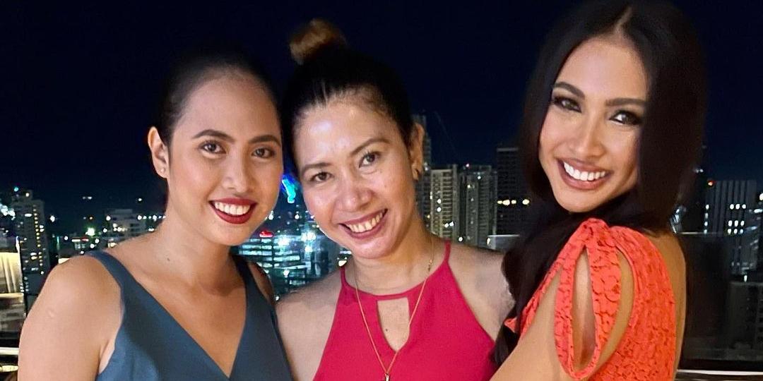In an Instagram post on Saturday, the Miss Universe Philippines 2021 titleholder shared a throwback photo of herself with her mom and her sister, saying that she spoke to them over the phone on Christmas Eve.