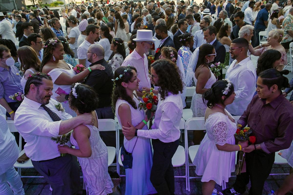 500 New York couples attend mass celebration after pandemic-hit weddings