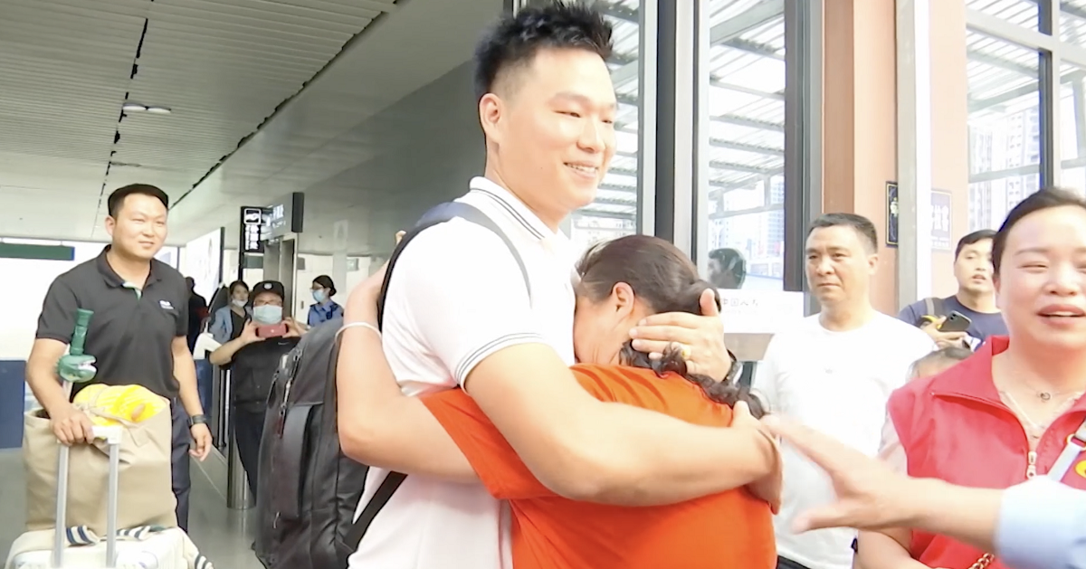 When Jiaxing and his family arrived at Zunyi City in Guizhou, China, he was shocked that his entire biological family was waiting for him with a welcoming banner.