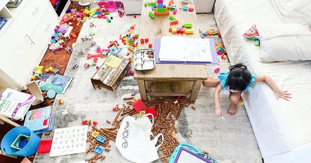 On Instagram, Aubrey shared a photo of their living room area filled with Rocket's toys.
