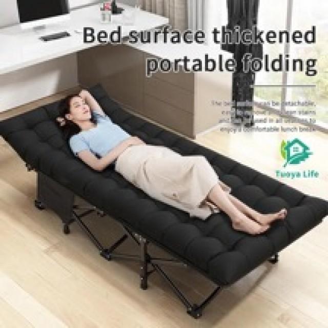 Built for comfort and style, this folding bed comes with an ultra-soft detachable cotton pad, sturdy, frosted rods that are anti-rust, and ten supporting feet built into a stable triangular structure.