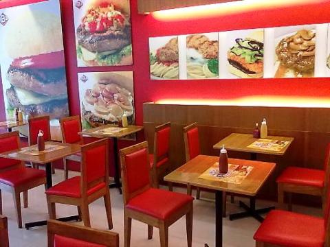 The franchise is said to have improved upon Americaâs fast-casual restaurant format. In other words, itâs a cross between quick, dependable service â characteristic of fast food chains â and a meal-conducive, welcoming setting that leans more towards upscale eateries. If you happen to walk past any of BBBâs branches, the openness of their arrangements and the loud colors will definitely invite you for a closer inspection. A quick glance at the initials on the restaurant sign will then compel you to look into the place some more (especially in Cubao, since you may also notice that the very next restaurant's initials read as KKK, for Kainan sa Kalye Kanluran). Inside, the tables are effectively positioned to host a good amount of customers without sacrificing the dinersâ privacy. The intense, dominant red on the walls make the place look fresh and vibrant, besides being the most potent color to induce hunger psychologically. But the red dominance is perfectly evened out with the cleanliness of white-bordered drawings, the enormous and enticing sample pictures of burgers, and a non-confrontational, readable menu above the counter.