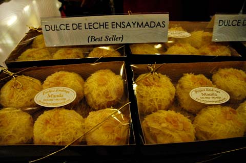 Vegetarians and those who like their food as fresh as only mother nature can give will do well to drop by Aramaâs stall to sample their Probiotic Sauce (P200 a bottle), a tangy sauce made from kefir, cucumber, bell peppers and coriander that is good as a dip with carrot and celery sticks or as a dressing for a healthy veggie salad. The other terrific find here is their Organic Lemongrass Tea from Pangasinan (P350 a bottle). Just a spoonful mixed into a glass of ice-cold water and served with a slice of lemon will instantly keep you cool under the hot weather. DULCE DE LECHE ENSAYMADAS of Perfect Endings
