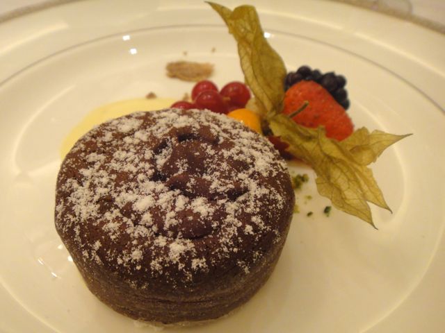 The dessert had truffles too. It was chocolate fondant with Angellozzi white truffle essence. The fondant, when speared in the middle, had a little chocolate oozing out. I happily swirled each forkful in the white truffle sauce for that extra oomph.