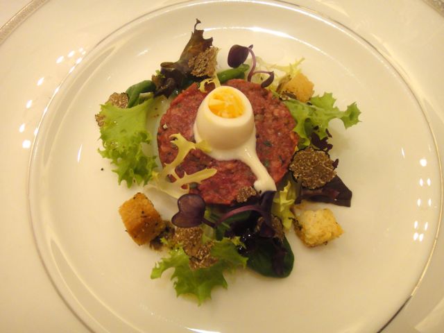 Beef tartare with mesculin and Angellozzi black truffle.