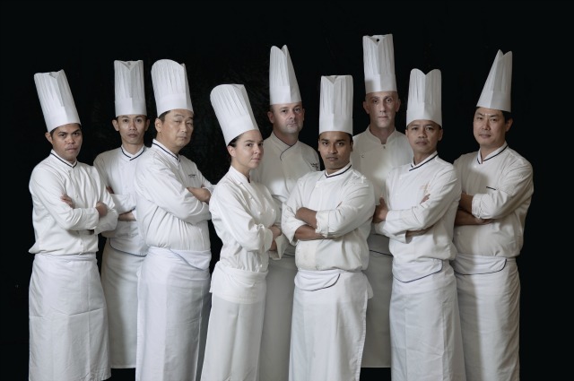 Cooking up a storm: Master chefs led by Executive Chef Eric Costille (5th from left)