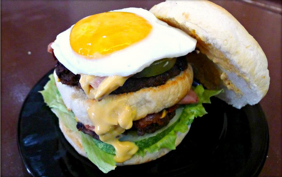 Riley Simon's Double Decker: a giant piece of meat lover's heaven. Photo courtesy of Riley Simon