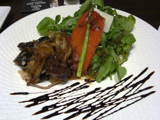 Dracula ignores the Tutto Mushroom Salad (P665), but his date enjoys the three kinds of mushroom drizzled with a Teriyaki Sauce. "The sweetness of the sauce balances the spiciness of the arugula," she says. "Arugu-vat?" Dracula frowns, and reaches for a slice of Gorgonzola Pizza (P475).