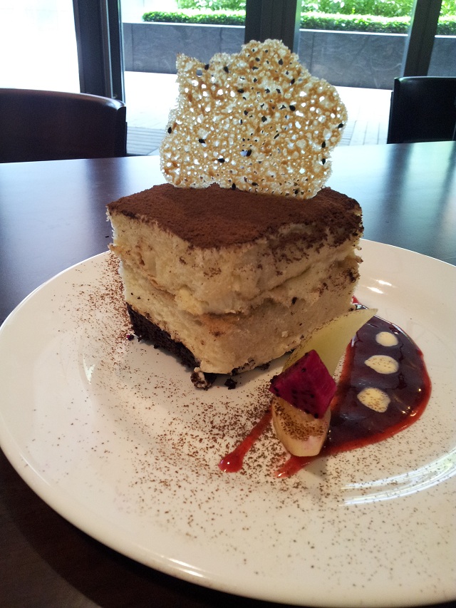 The Wild Arugula and Cherry Tomatoes Salad (P375), flavored with gorgonzola cream, candied walnuts, shallots, might be a be a bit harsh for the Filipino palate, the arugula's bitterness overpowering the greens, but the cream dressing and the candied walnuts help tone things down and balance the flavors. Chef Arnold says that this salad was inspired by the building's green design. Terraz also has an interesting selection of pastas and pizzas. The pastas are fresh, made in-house. The Tagliatelle (P225), which has cream, fresh dill and lemon, gets its pinkish color from beetroot, the cream sauce complementing the fish and providing the palate a break from the tomato sauce usually used to make this dish. The Fettucine (P325) is a perennial favorite, this version coated in a truffled mushroom "Alfredo" sauce spiked with rosemary. Terraz's pizzas are all thin-crust, with exotic toppings like the Asian BBQ Chicken Pizza (P375), whose smoked chicken and hoisin sauce make it taste more like Peking Duck than pizza, and the Carne Pizza (P375), the restaurant's ode to meat lovers, slathered in a bolognese sauce.