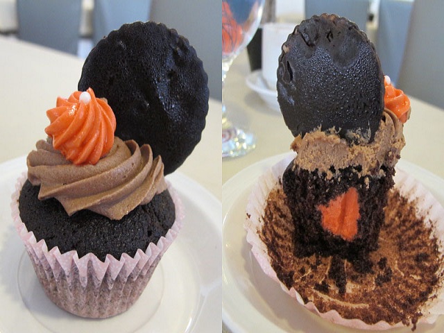 The cupcake was too pretty to eat, as it was decorated with swirls of creamy frosting and an elegant dark chocolate disk.