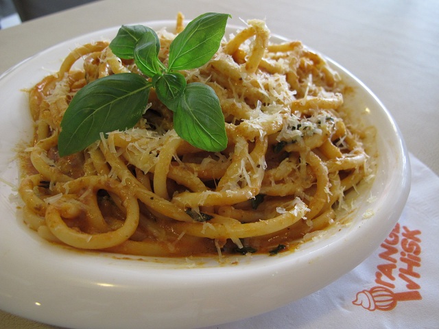We also sampled the signature pasta dish called Buccatini Orange Pasta, which had straw-like noodles cooked in tomato sauce, cream sauce, ground beef, fresh and dried herbs, and Parmesan cheese. The noodles were hollow in the middle to better absorb the saucy goodness.