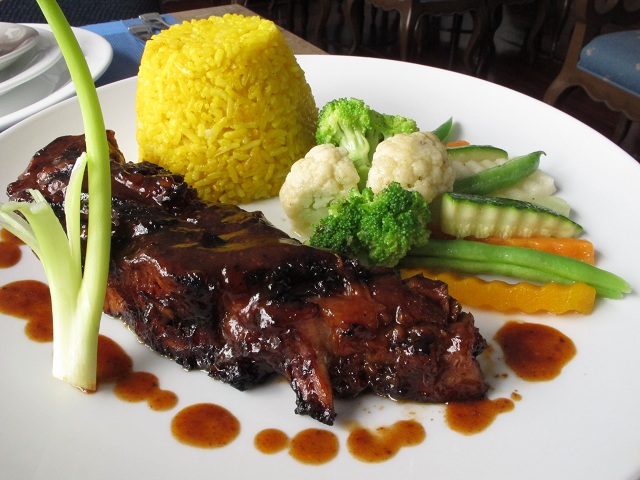 For me, the dish that stood out was the Hickory Pork Belly Barbecue, oven-baked pork marinated in special sauce and grilled with smoked barbecue sauce. I’m not sure how long they cooked the meat but it was really tender. I didn’t have to use a steak knife to slice off the meat, which was had a nice charring on the outside and a yummy mix of flavors that ranged from sweet to smoky and a bit spicy. I even forgot about the rice and steamed vegetables that came with it. I would definitely go back to Bistro Ibarra just for this dish alone.