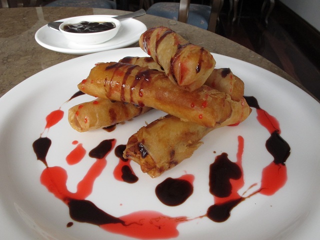 Even though my tummy was happy already, I needed to get my daily dose of sweets before leaving the restaurant. To cap off my meal, I tried some Turones de Saba, banana slices wrapped and cooked a la lumpiang shanghai. The tower of fritters was drizzled with dark chocolate syrup and pink guava coulis. Although it leveled up the presentation of the dish, I thought it didn’t need the extra sauces as the turon was satisfying enough.