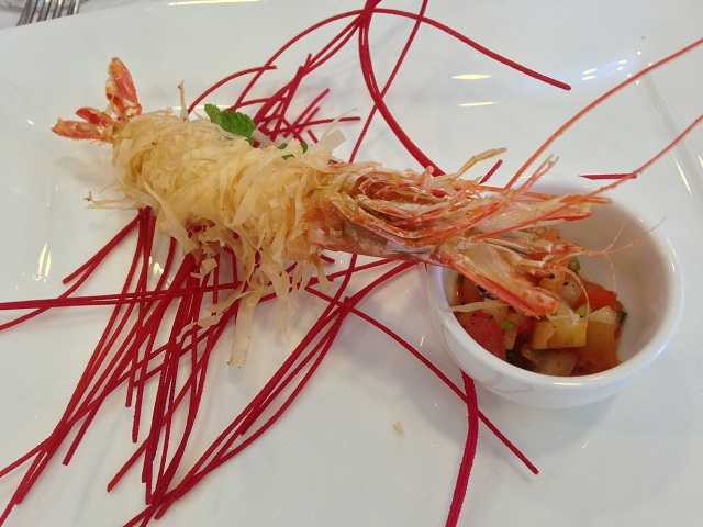 The entrée came after in the form of prawn phyllo, a piece of breaded prawn with fresh tomato chermoula sauce. I had no idea what chermoula was at that time but it sure was tasty and a nice complement to the crustacean.