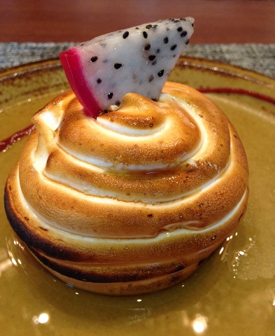 The Baked Alaska had a small slice of dragon fruit as its topping and was surrounded by a drizzle of strawberry sauce. It seemed too pretty to mess up but I scooped out a spoonful of it anyway and saw luscious layers of cream, chiffon cake, and strawberry ice cream. I liked the coolness that the ice cream provided and the texture of the cake, which satisfied my sweet tooth.