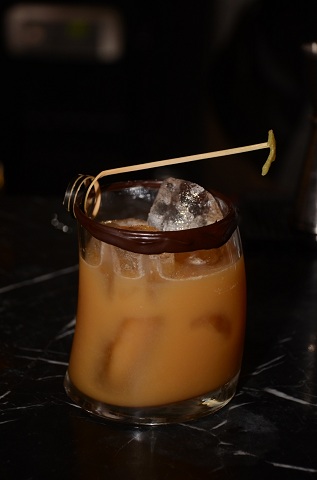 One of Cinalli's offerings that night was the Benedetto Johnnie, which used Johnnie Walker Gold Label Reserve, Benedictine liqueur, Cacao honey, and mastica smoke.