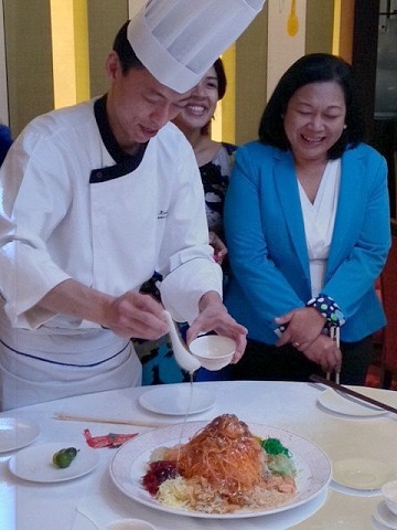Executive chef Richard Thong, a Singaporean-born chef with over 25 years of culinary experience, led the prosperity toss by asking everyone to shout “Gong Xi Fa Cai”, which translates to “Congratulations for your wealth.” After which, participants would need to say “Wan Shi Ru Yi”, which means “May all your wishes be fulfilled”.