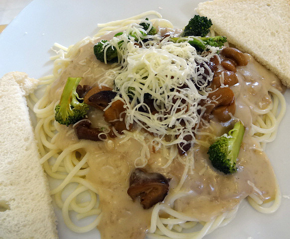 Vegetarian Dinner Club. I wrote about the dinner club before and we have been going to their Friday and Saturday eat-all-you-can buffet dinners a few times each month. We have never been disappointed—it's good value for money considering you will get a delicious full-course vegetarian meal (soup, appetizer, rice, dessert, salad, 2-3 main dishes) all for P150. The club is run by the Pure Bhakti Yoga Society (a branch of the Hare Krishna movement) and is open every Friday and Saturday only, from 6:00-8:00 p.m.