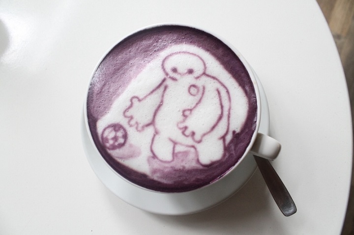 Order the Sweet Purple Potato Latte at Subspace Coffee House and get sweet latte art too.