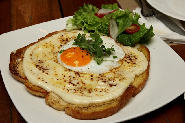 I was actually excited about the Croque Madame, expecting that this dish would be excellent since the restaurant took its name from the French sandwich. Though not disappointing in taste, the open-faced nature of the sandwich meant that eating it entails the use of a fork and a knife. Not an easy thing considering the thickness of the bread, ham, cheese and Bechamel sauce.