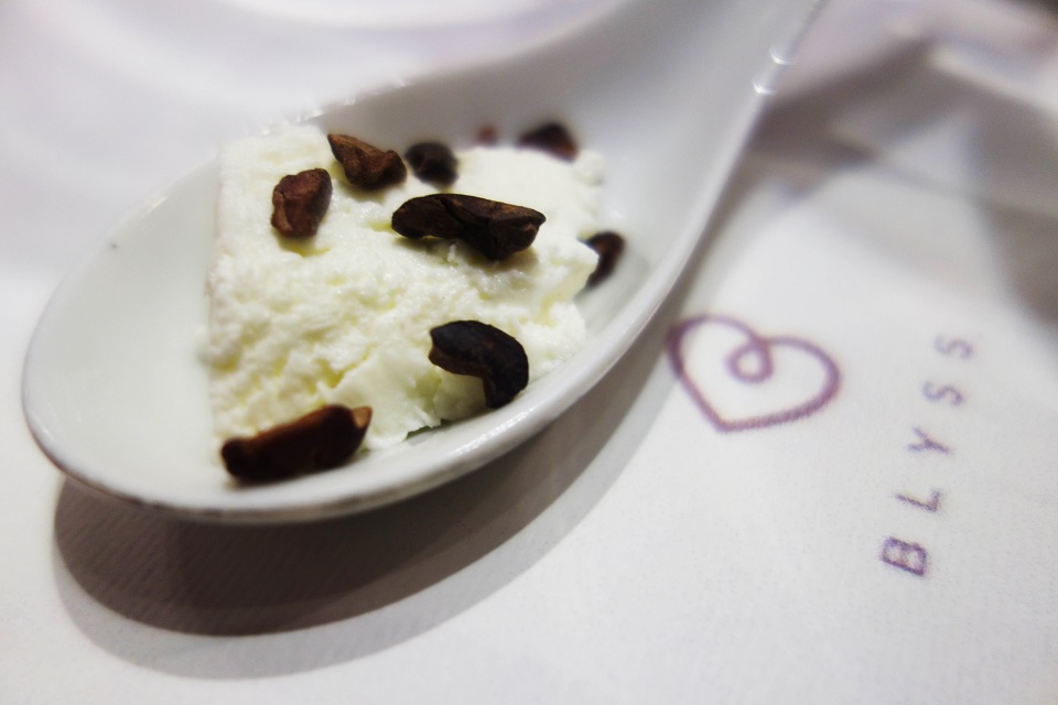 Cacao nibs dot a bit of Malagos cheese. Blyss
