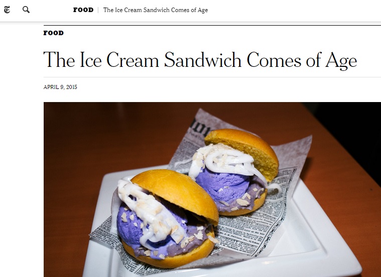 Pinoy ube-coconut-pinipig ice cream sandwich featured in the NYT