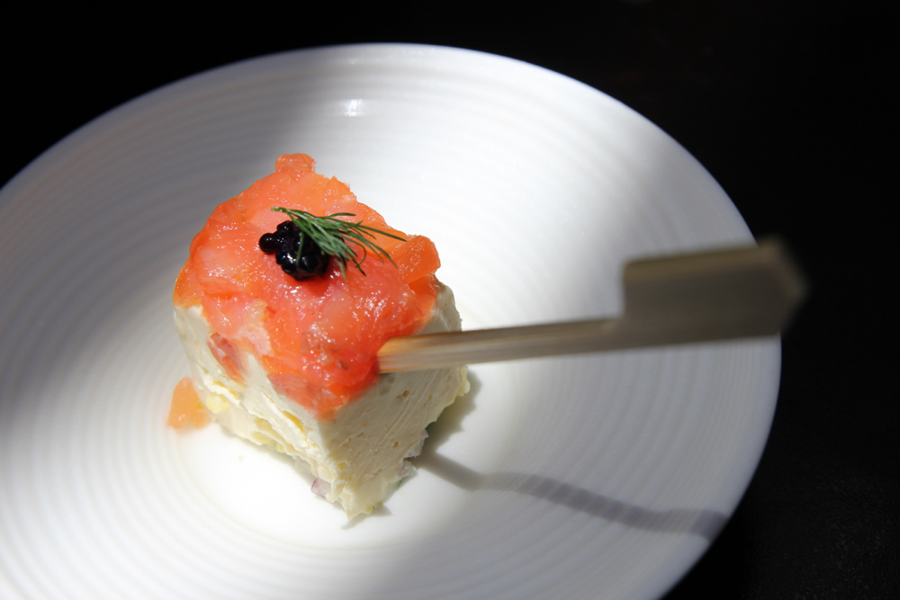 Chef Mia Manuel’s gravlax—Nordic raw salmon dish cured in salt, sugar and dill—is better eaten with a piece of bread or toast. Unfortunately, slicing the salmon into small bits made the gravlax play second fiddle to the thick layer of cream cheese.