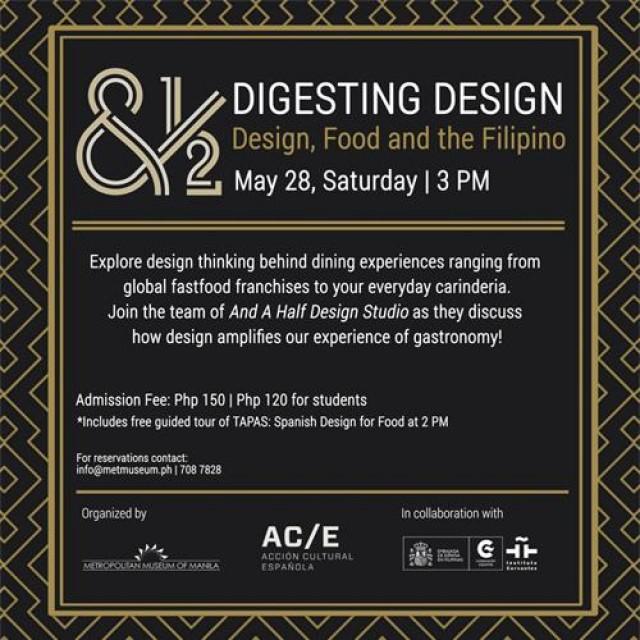 Admission for the talk, which starts at 3 pm, is P150 (regular) and P120 (students). The fee is inclusive of a guided tour of MET's "TAPAS: Spanish Design for Food" exhibit, which starts at 2 pm.