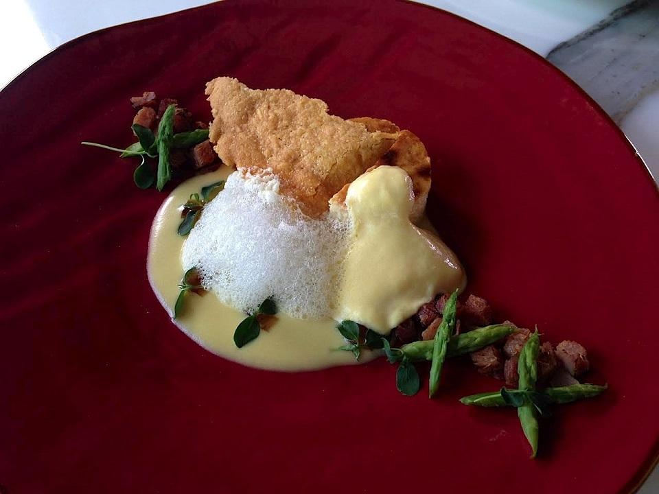 Definitely a must-try is the Quezo de Bola & Hamon inspired by the great Massimo Bottura, an Italian restaurateur with a three-Michelin-star restaurant in Modena, Italy. The cheese concoction pairs well with the sweet glazed ham, soft gelee, asparagus, and the crunchy cheese crisp. Best to share this with your dinner companion as its strong flavor goes a long way.
