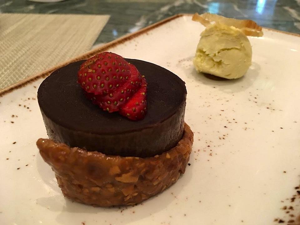 The taste was not too cloying and I imagined the texture to be that of a frozen chocolate mousse. It was a satisfying ending, especially since it was wrapped in a toffee brittle and paired with vanilla ice cream.