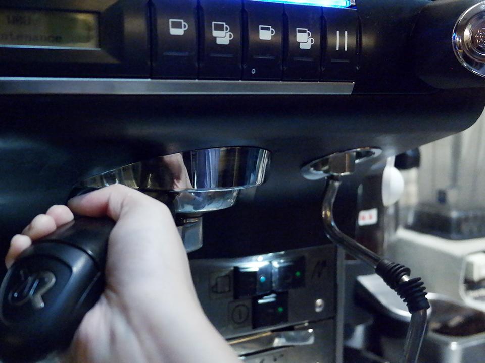 Step 3: Place the portafilter into the group head of the espresso machine.
